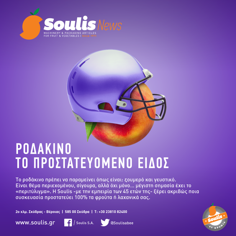 Το ροδάκινο πρέπει να παραμείνει όπως είναι: ζουμερό και γευστικό. Είναι θέμα περιεχομένου, σίγουρα, αλλά όχι μόνο... μέγιστη σημασία έχει και το "περιτύλιγμα". Η Soulis -με την εμπειρία των 45 ετών της- ξέρει ακριβώς ποιά συσκευασία προστατεύει 100% τα φρούτα ή τα λαχανικά σας.